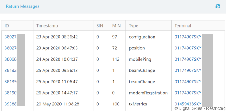 Return messages display messages sent BY a terminal or terminals in the selected mailbox.