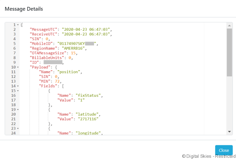 Click on the [Message ID] to show the raw JSON-formatted message.