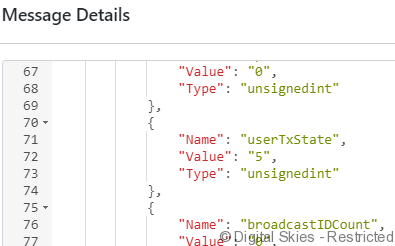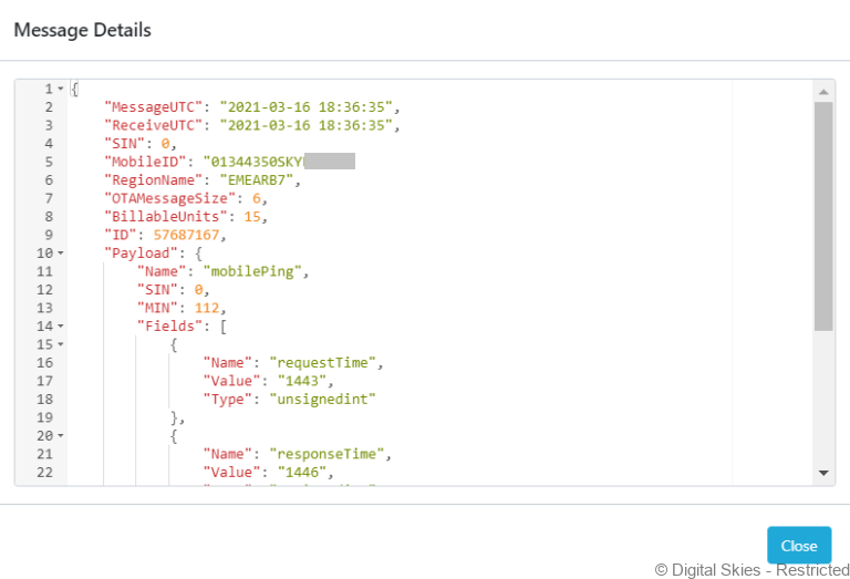 Click the [message ID] to get the raw JSON message content that provides more information from the return message, such as the request and response time in a ping.