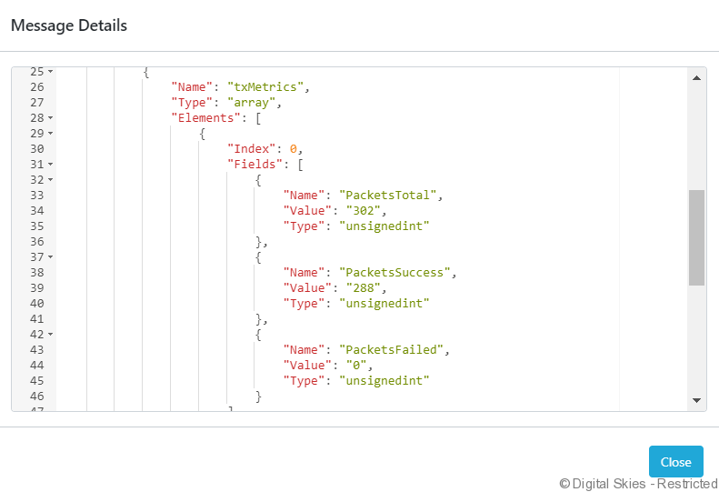[Tx Metrics] – Request the transmit (return message) metrics from the terminal.