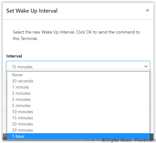 [Set wake-up interval] – Set the scheduled wake-up on the terminal.