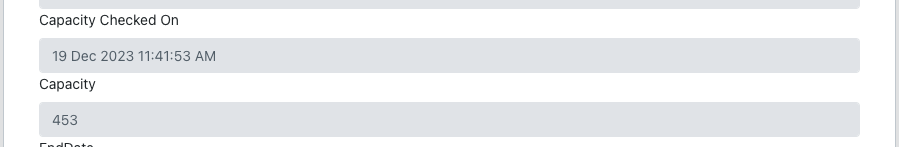 The Capacity Checked On date/time and Capacity figure fields are refreshed in the sites details form.