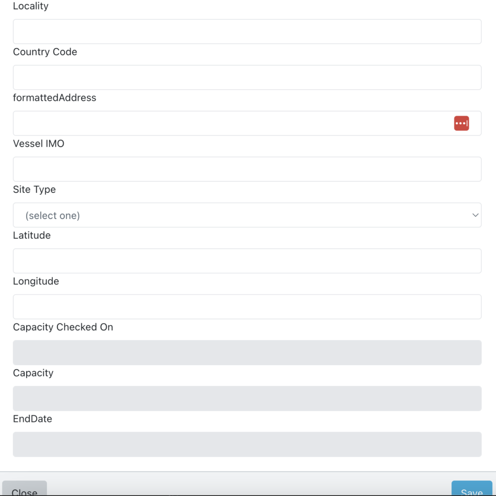 Optionally, enter other information as required, such as Vessel IMO or Site Type.