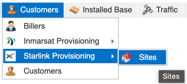 Navigate to Customers –> Starlink Provisioning –> Sites.