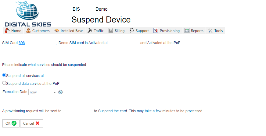 - If there is an error with any step in the process it may delay the SIM card being suspended. It’s important the DP/SP monitors provisioning tasks and failures, see more information [Monitor Provisioning Tasks] https://digitalskies.info/monitor-provisioning-tasks/