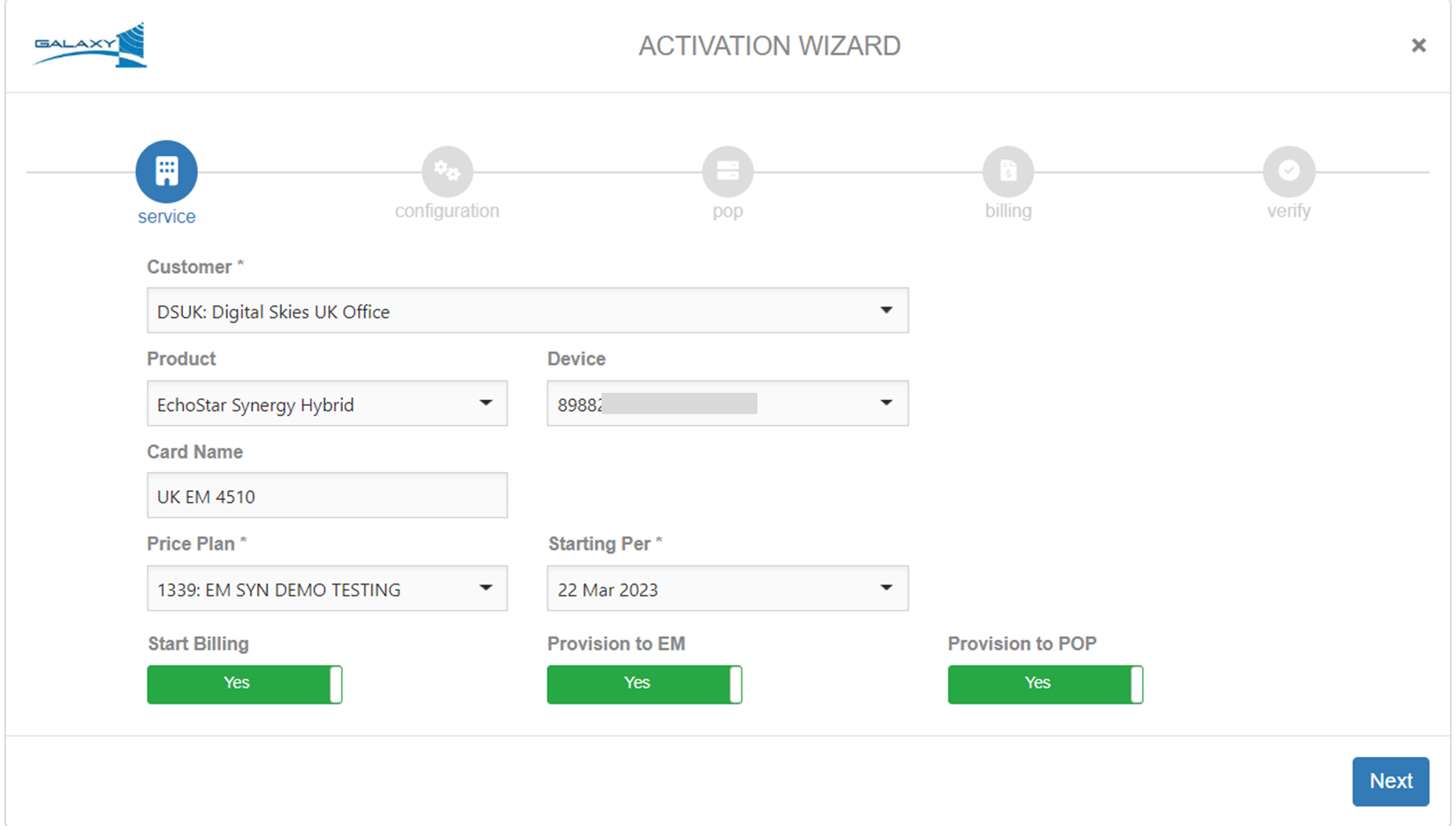 - The priceplan to activate the device on has been created and is made available to this customer. If not, go to price plan creation