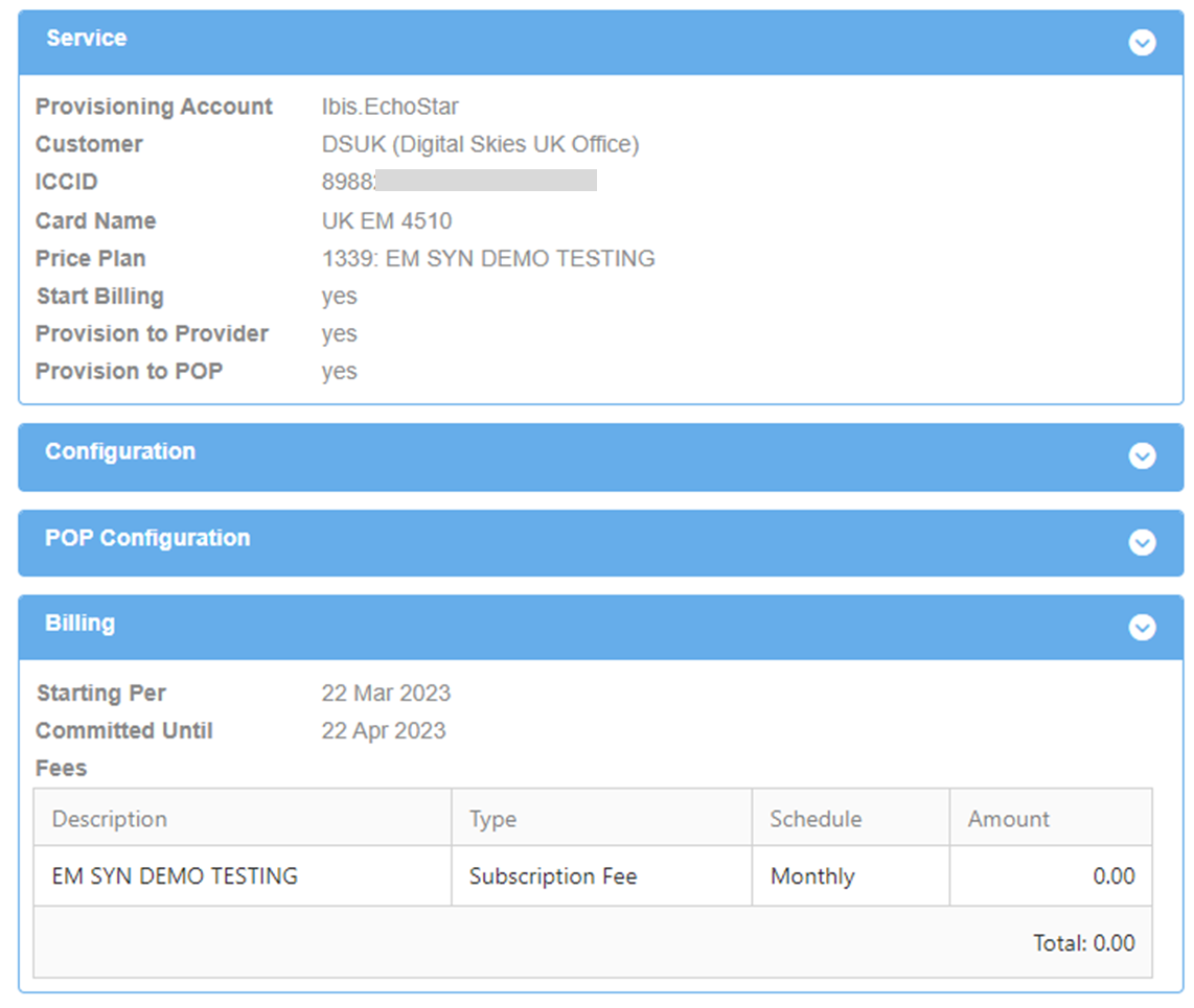 Find the SynSat SIM card in [Installed Base] and click hyperlink of the ICCID