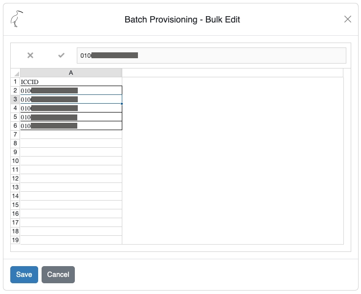 Use [Bulk Edit] and copy the ICCIDs from the excel:
