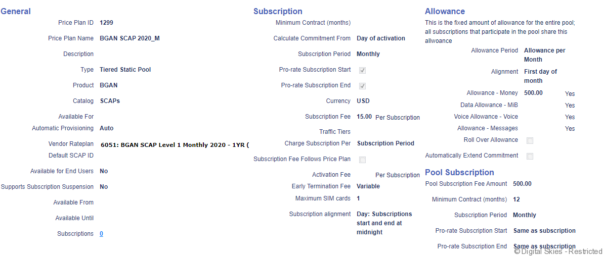 - Example of a BGAN SCAP 2020 with a monthly Pool Allowance Subscription. Note that the individual SIM subscription has a different commitment than the Pool subscription.