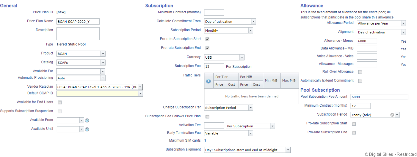 Each BGAN SCAP 2020 therefor requires its own price plan. A price plan for a Tiered Static Pool can not be used to create subscriptions for multiple SCAP IDs.