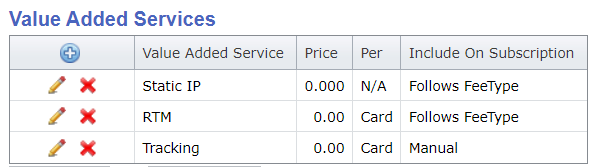 In the set up of a Price Plan there is a section for Value Added Services where additional fees can be defined. Only fees that are set as VAS fees in the Fee Type are available.
