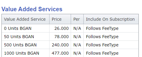 Note: ‘N/A’ should be applied to provisioning driven fee types, as these are neither applied per device, not per subscription, but per enabled service. For instance, a Certus device can have up to three Plus One numbers enabled.